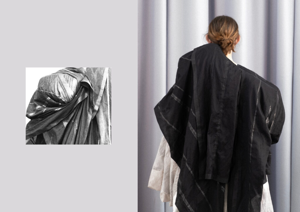 One can broadly be described as ‘Textile, or surface, led’ with a design approach considered to be from the ‘Textile-outwards’. The other can broadly be described as ‘Silhouette, or shape, led’ with a design approach considered to be from the ‘Silhouette-inwards’.
